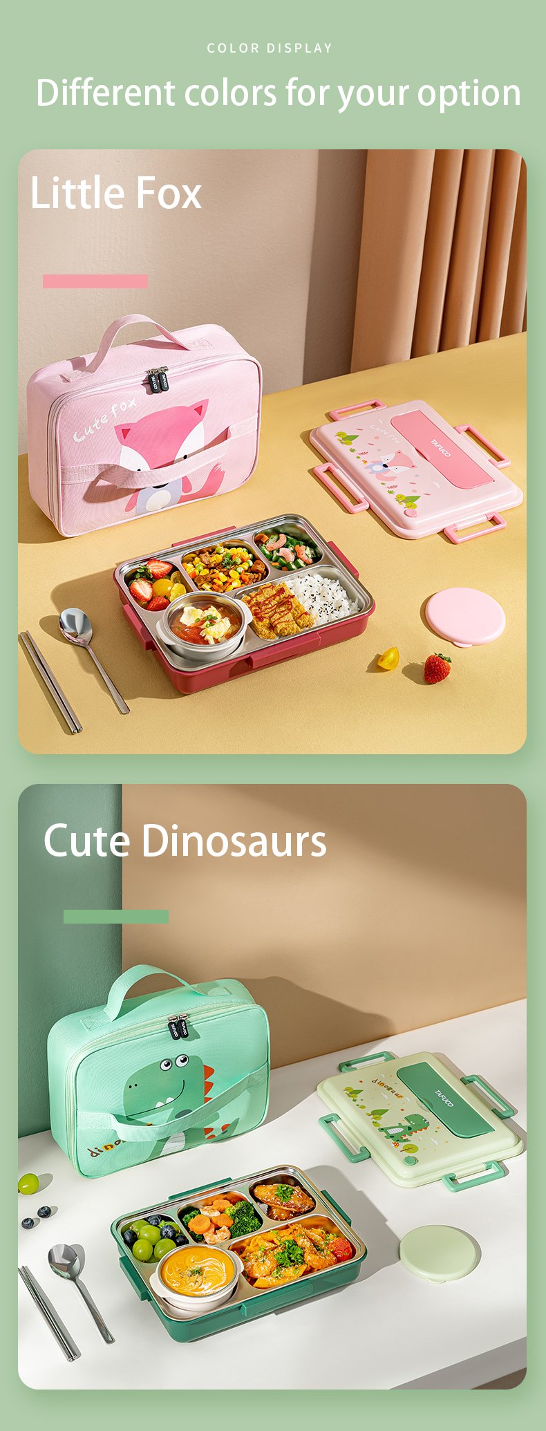 We know organization matters! This lunchbox is designed to be fully detachable, making cleaning a breeze. You’ll appreciate how effortlessly each part can be separated for thorough washing. Combine that with the easy-carry handles on the insulated bag—horizontal for when it’s full and vertical for when it’s empty—and you have a lunchbox that’s as easy to carry as it is to use. Available in three vibrant colors and patterns, it’s as stylish as it is functional. Your kids are sure to love it!